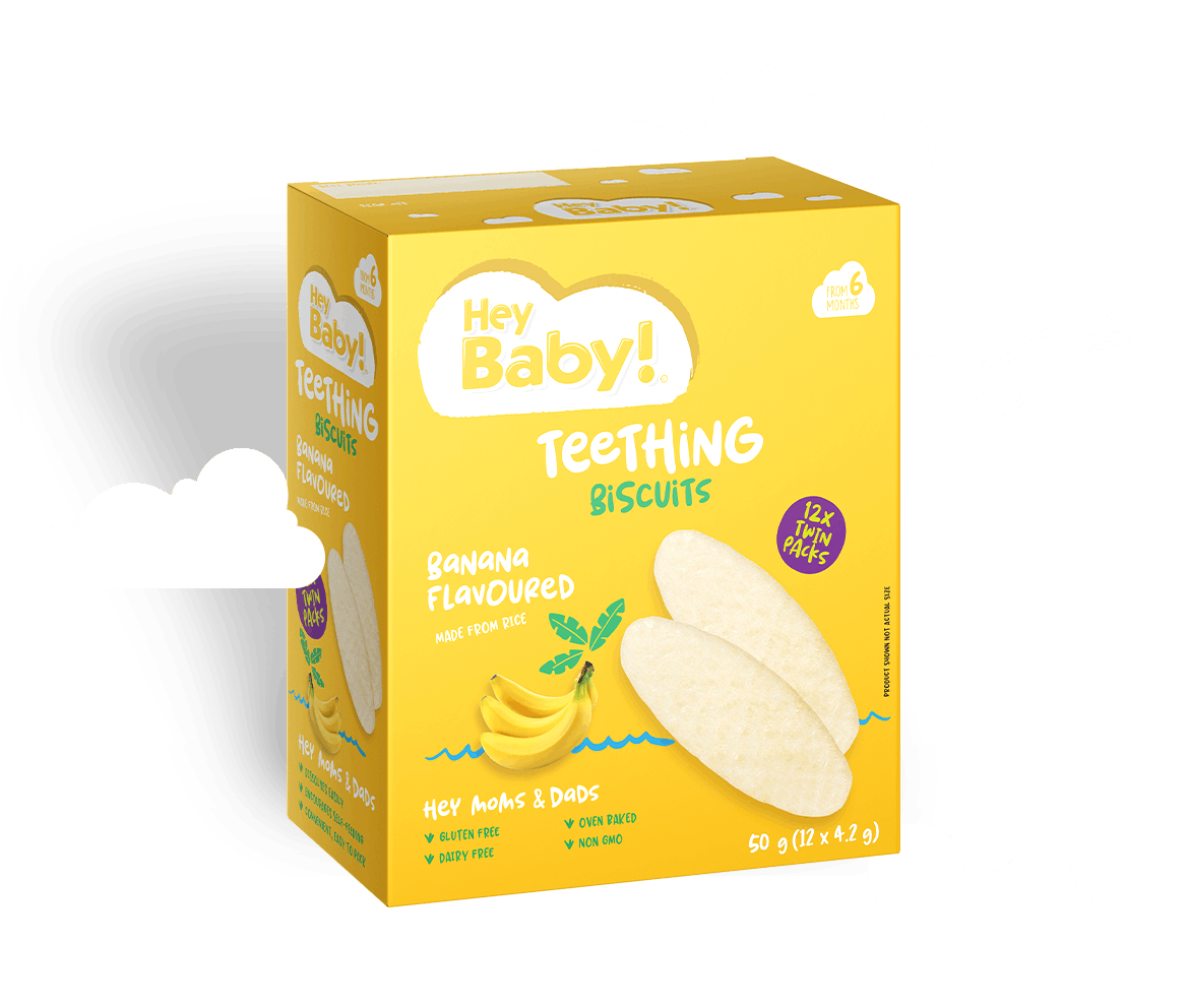Give your little one a banana-flavoured teething biscuit and you will get a smile. Those teething tears will be over in just a little while!