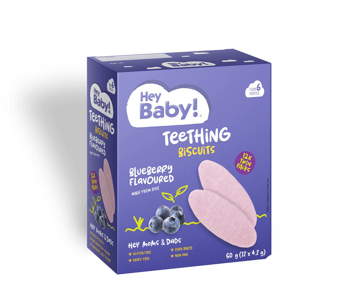 Little baby blue? Try a blueberry-flavoured teething biscuit and you will soon get a happy giggle or two!